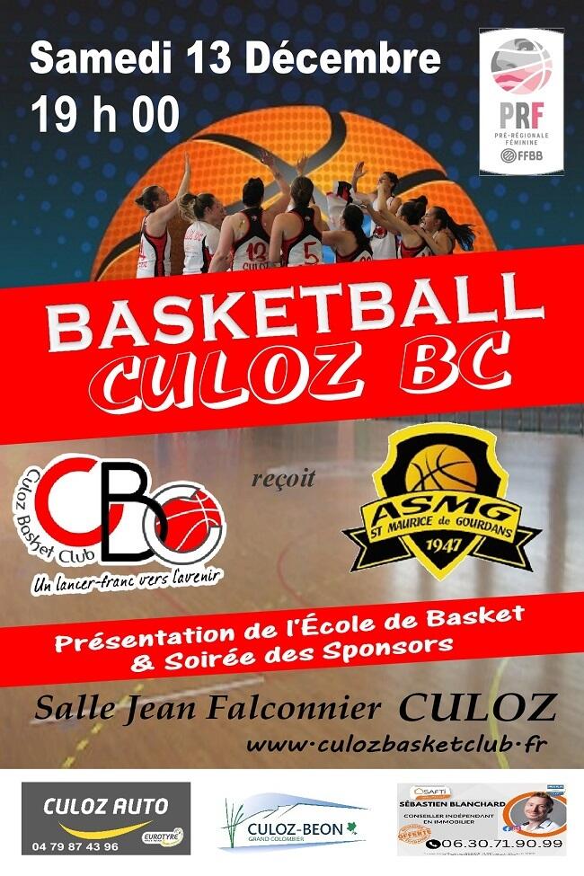 Culoz Basket reçoit St Maurice de Gourdans 13 décembre 19h