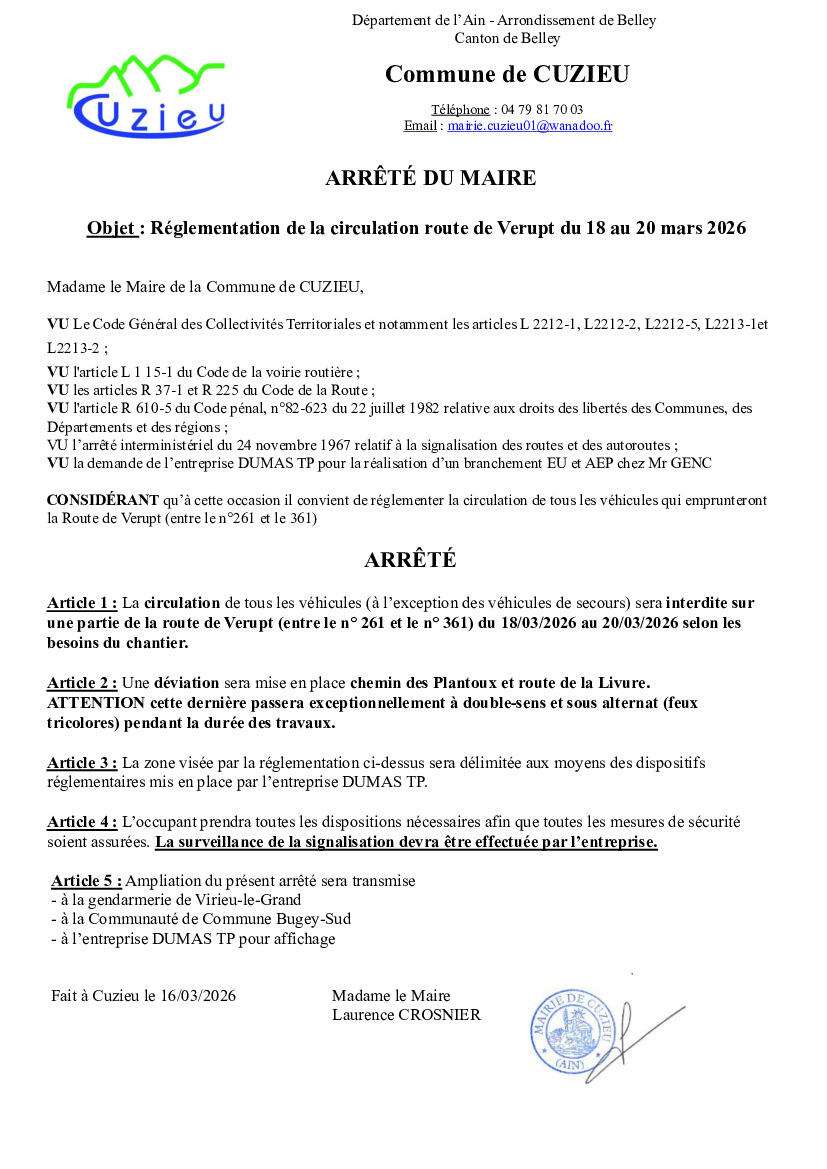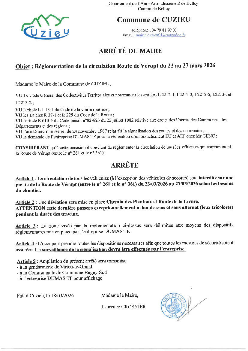 Circulation Rte de Verupt à partir du 23/03/26 : DÉVIATION