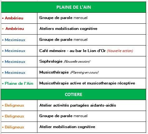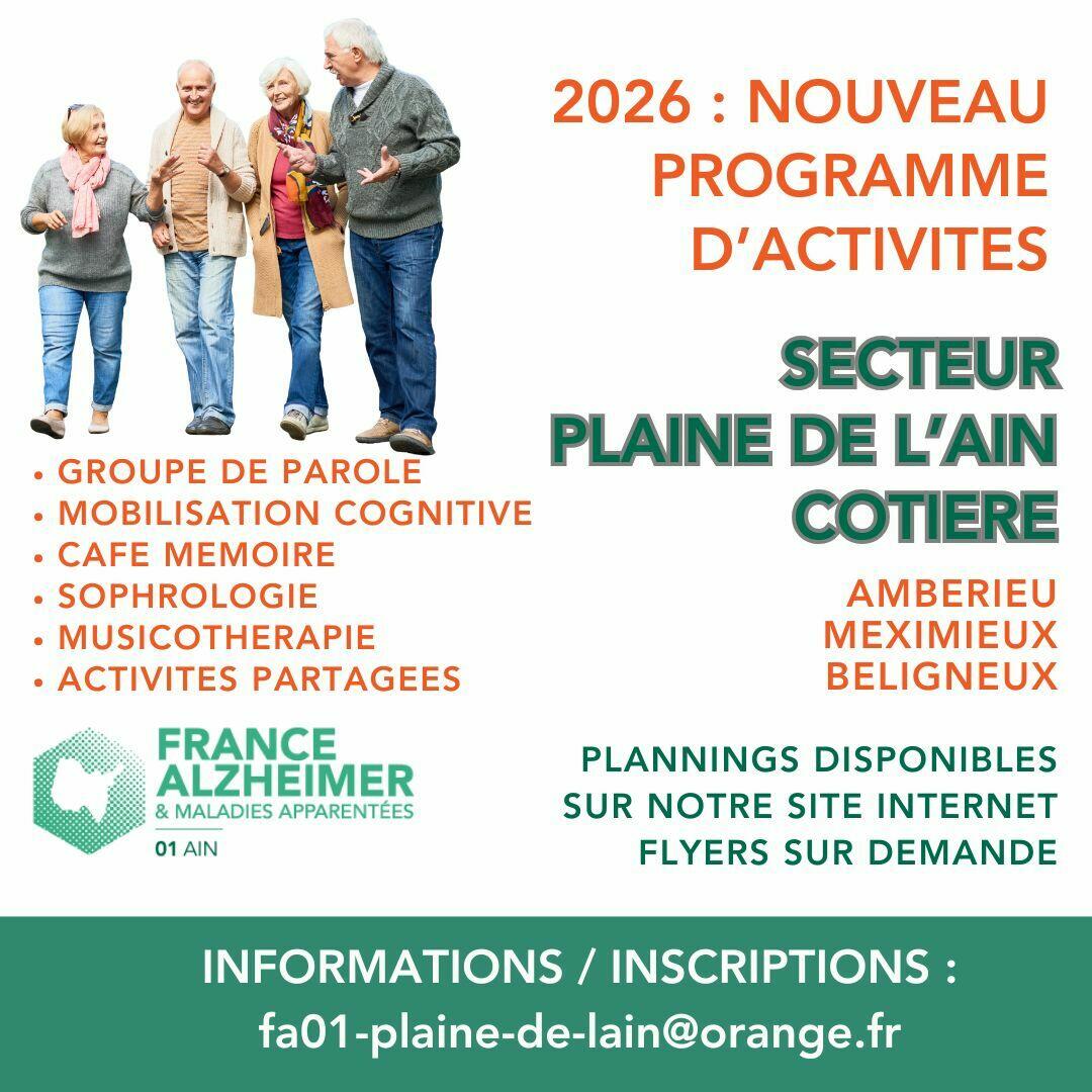 Les plannings des actions sont disponibles sur le site internet : https://www.francealzheimer.org/ain/agenda-evenements/