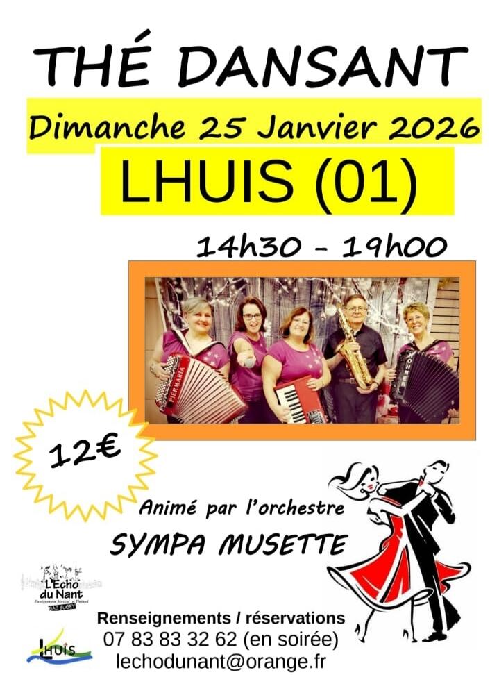 Thé dansant à Lhuis 26-01-22 L'écho du Nant organise un thé dansant animé par l'orchestre Sympa Musette ce dimanche 25 janvier à Lhuis.
