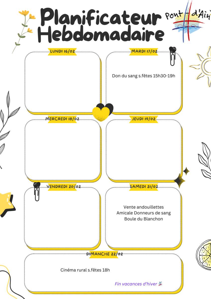 Voici votre agenda pour les deux prochaines semaines #Agenda2026 #jedonnemonsangjesauvedesvies #dondusang #dondeplaquettes #AssociationsLocales #CinemaRural #culturepourtous #icicestpontdain