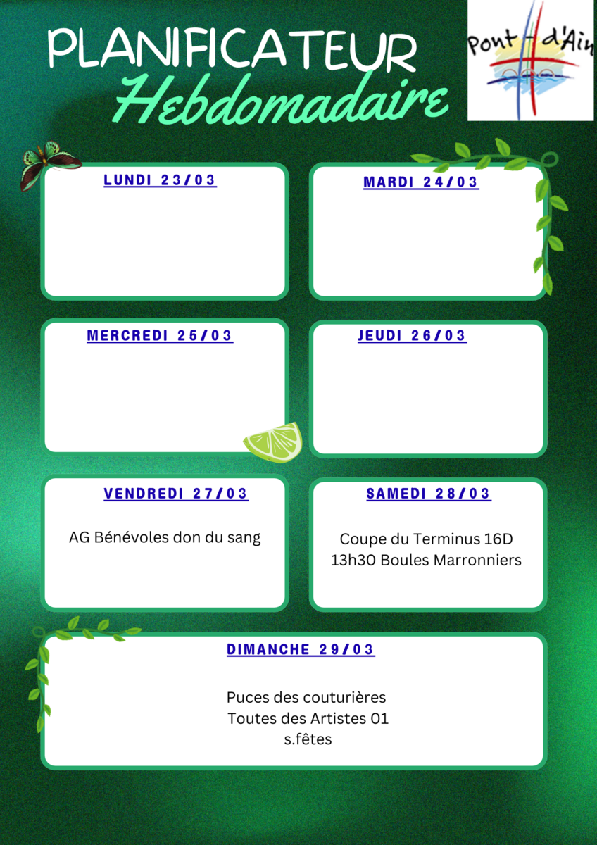 Votre mairie / Actualités / Agenda événements Pont d'Ain