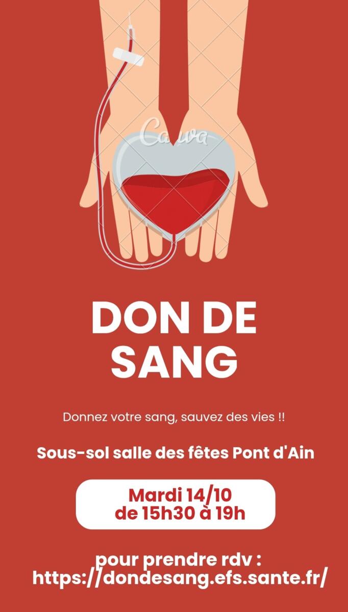 Votre collecte de sang revient le mardi 1️⃣4️⃣ octobre de 15h30 à 19h à la salle des fêtes de Pont d'Ain🩸