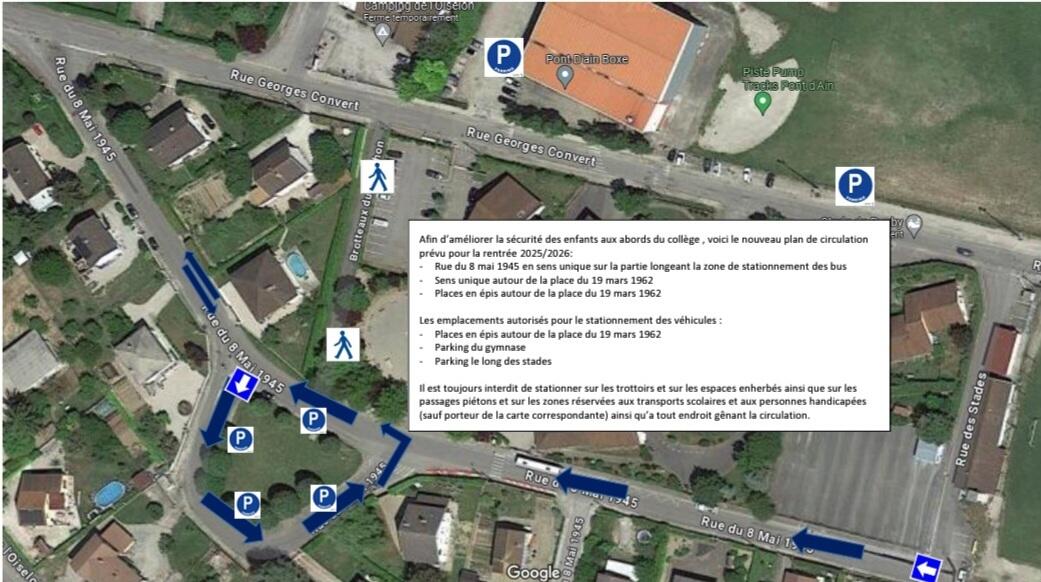 📌 La circulation aux abords du collège va changer à la rentrée de septembre 2025 et une nouvelle circulation entrera donc en vigueur. Voir plan ci-dessous.