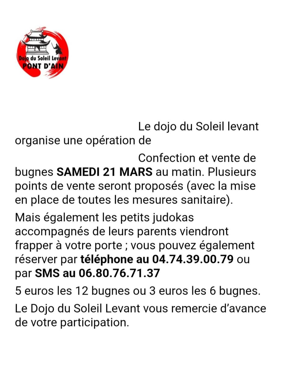 📌 Dojo du Soleil Levant Pont d'Ain organise une opération "confection et vente de bugnes" samedi 2️⃣1️⃣ mars au matin