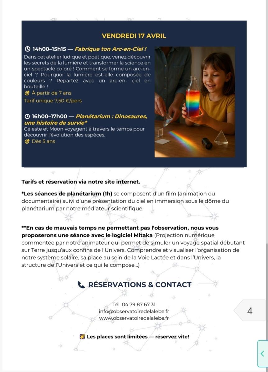 Votre mairie / Actualités / Programme des vacances – Observatoire de la Lèbe