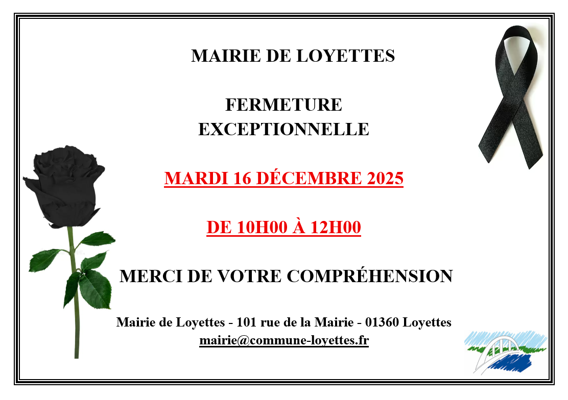 ⚫️ Fermeture exceptionnelle ⚫️ 25-12-15 ⚫️ La mairie sera exceptionnellement fermée ⚫️ mardi 16 décembre de 10h à 12h. Noos vous remercions de votre compréhension.
