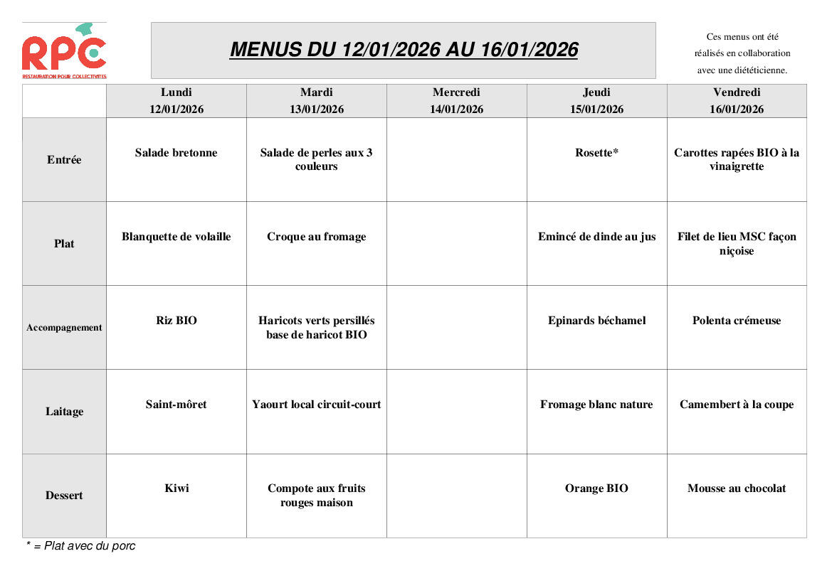 MENU CANTINE ECOLE HEYRIAT DU 12 AU 16 JANVIER