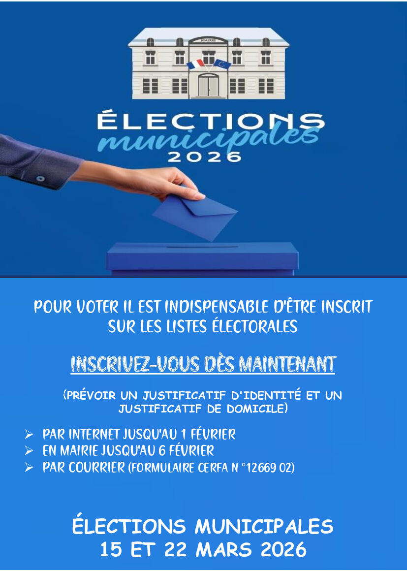ÉLECTIONS MUNICIPALES 2026, INSCRIPTION SUR LES LISTES