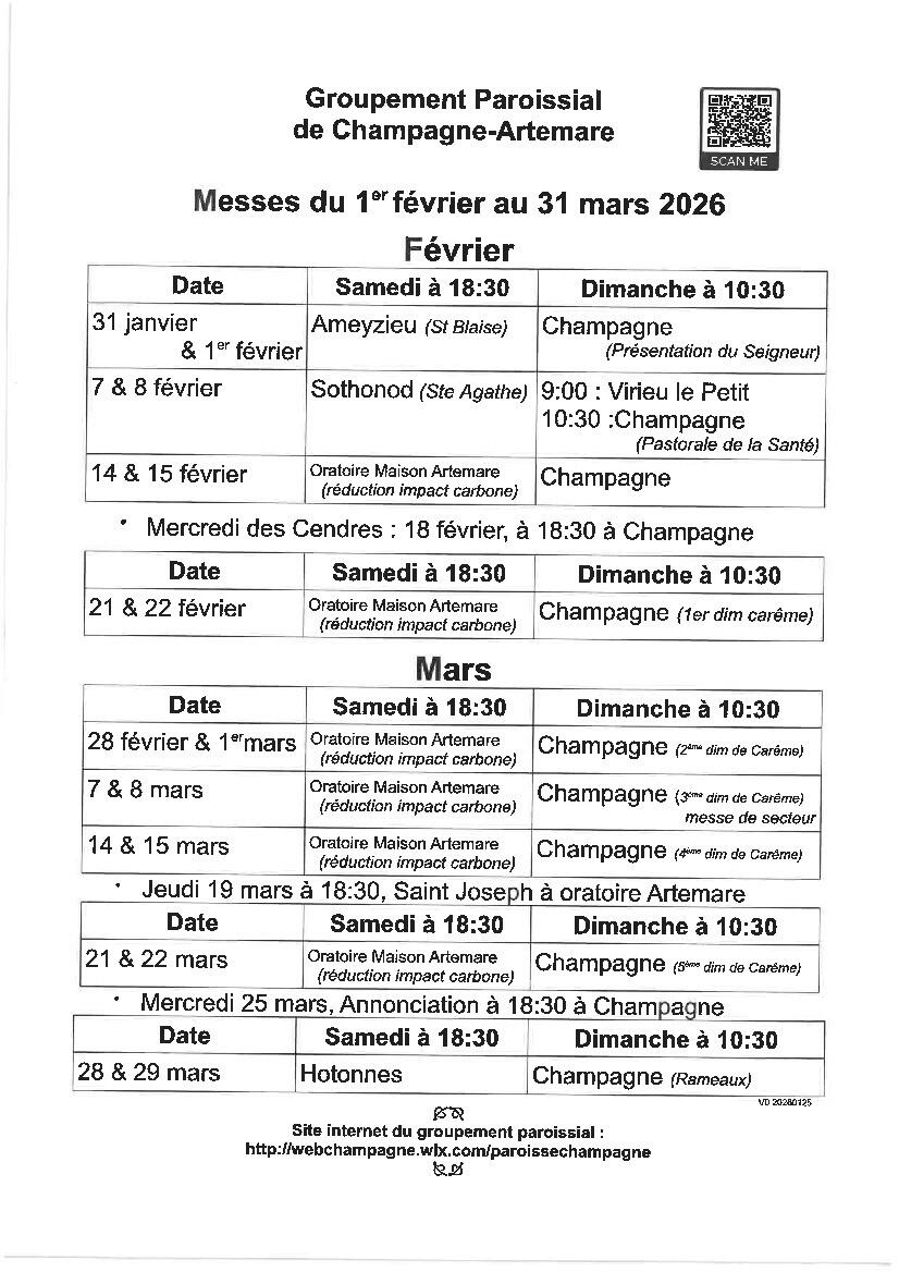 Votre mairie / Actualités / Messes du 01.02 au 31.03.2026