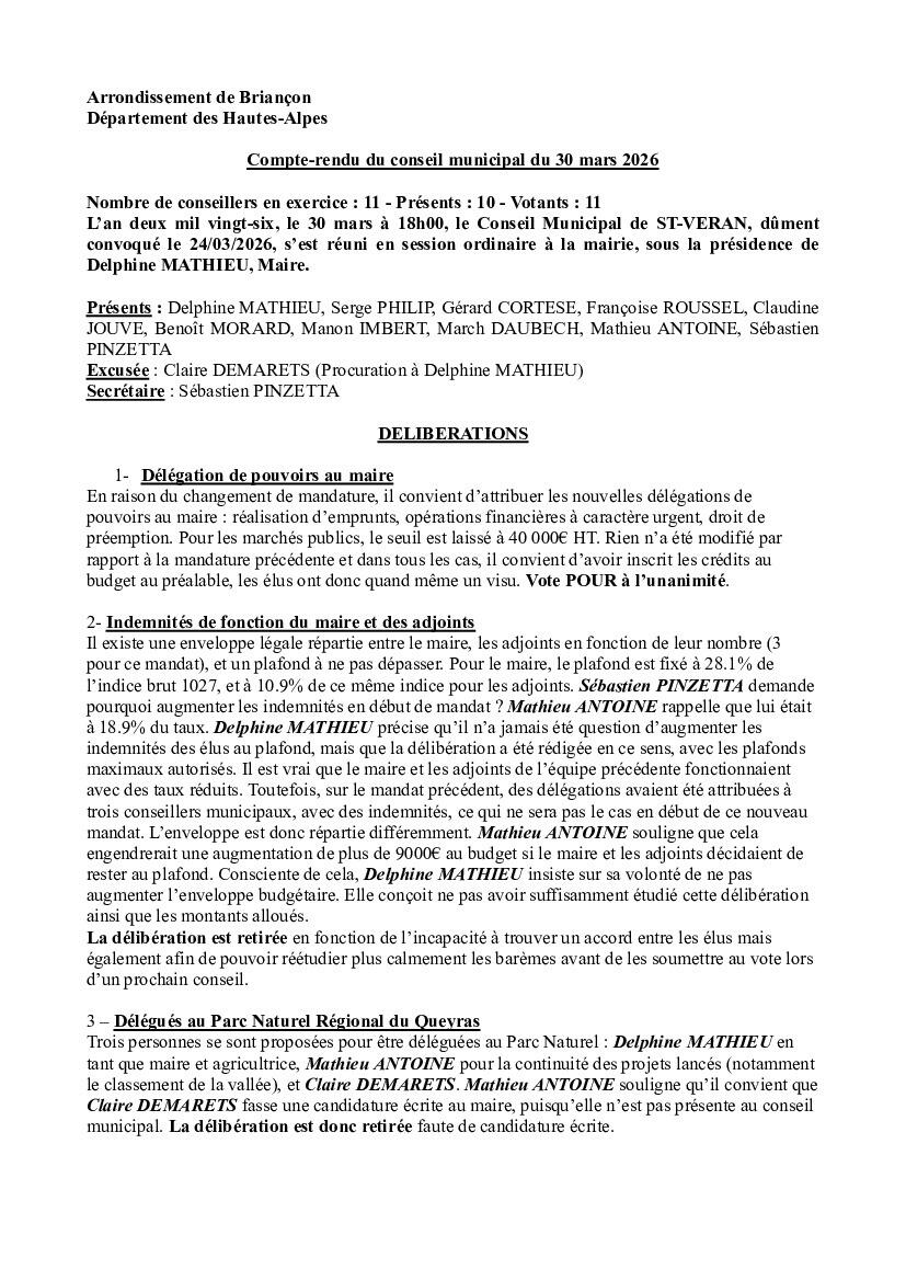Compte-rendu du Conseil Municipal du 30 mars 2026.