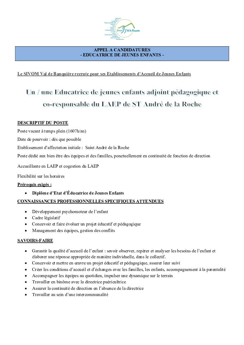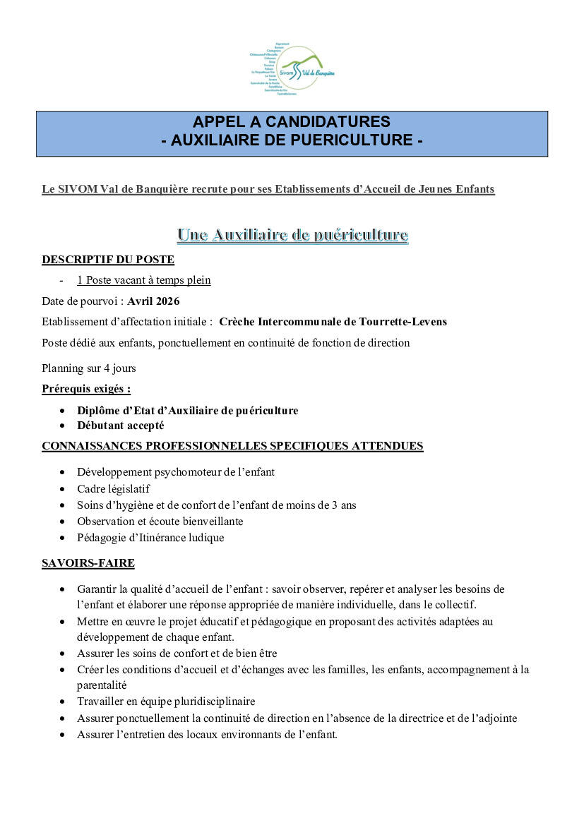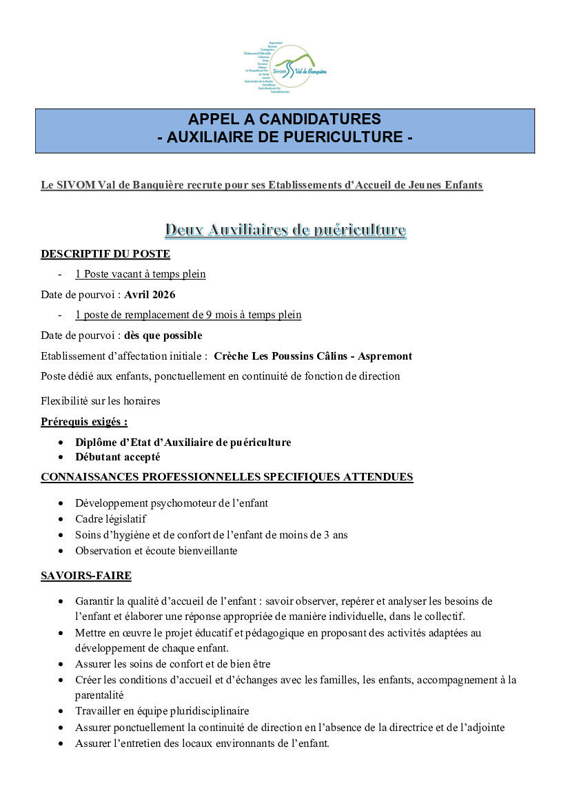 Offre d’emploi pour le relais Petite Enfance du SIVOM Val de Banquière