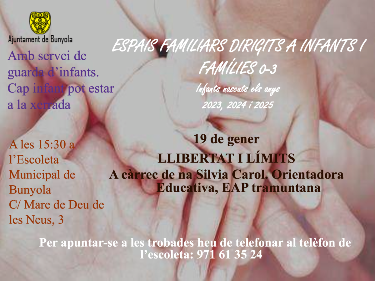 🗣️ En aquesta trobada es durà a terme la xerrada “Llibertat i límits”, a càrrec de na Sílvia Carol, orientadora educativa de l’EAP Tramuntana, que abordarà un tema clau en l’educació i el desenvolupament emocional dels infants.