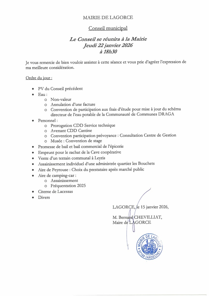 Ordre du jour du prochain Conseil