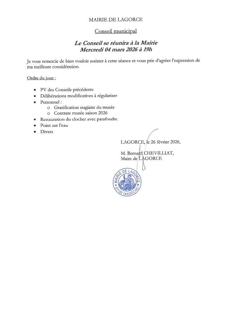Ordre du jour du prochain Conseil