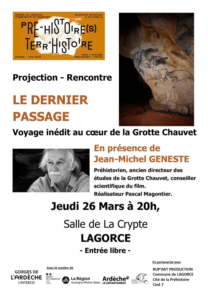 L'entrée est libre et la projection sera suivie d'un temps d'échange avec Jean-Michel Geneste, conseiller scientifique du film. Ce préhistorien a été conservateur de la Grotte de Lascaux et directeur scientifique de la Grotte Chauvet.