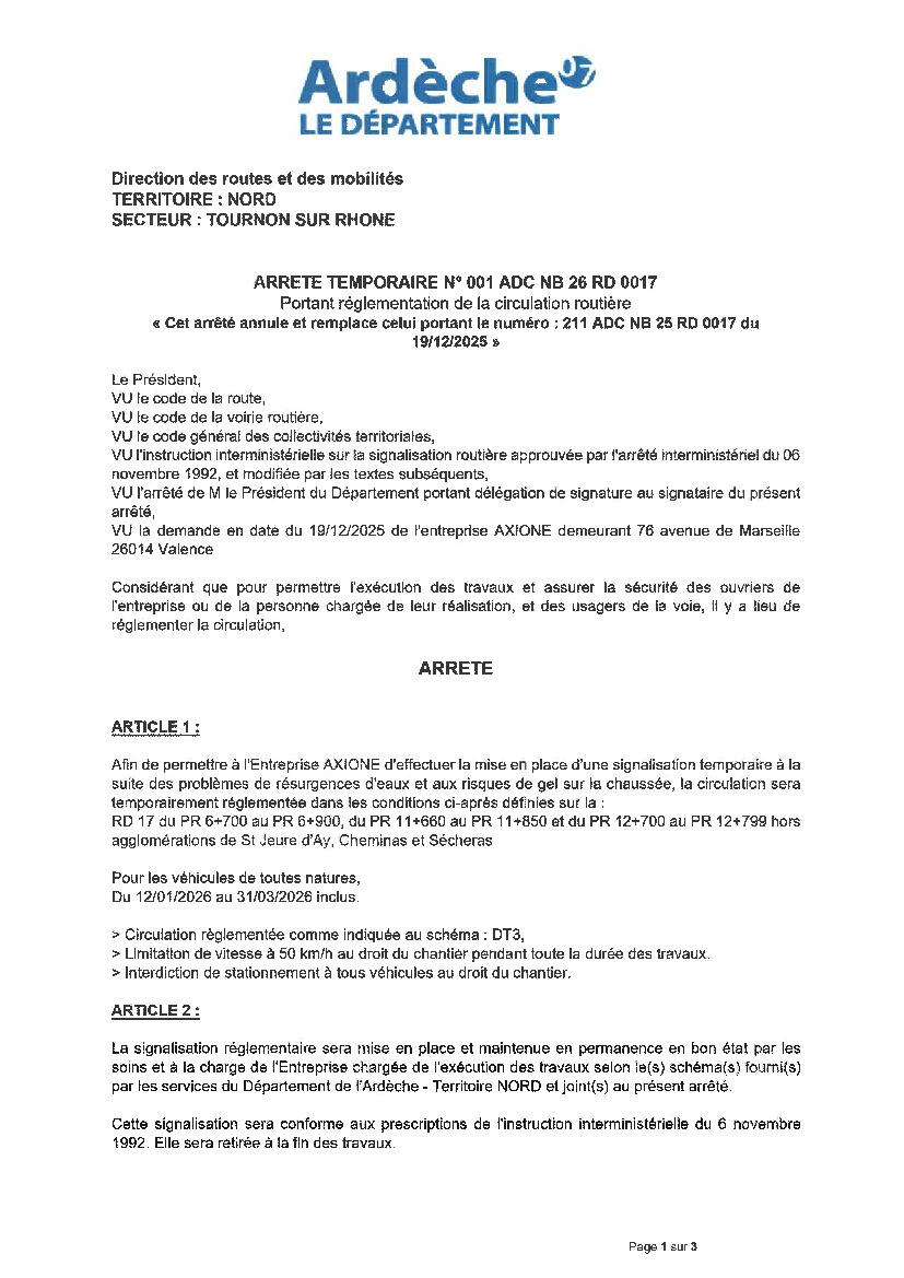 Arrêté temporaire