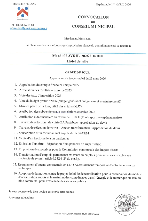 Installation du nouveau conseil municipal – Vendredi 20/03