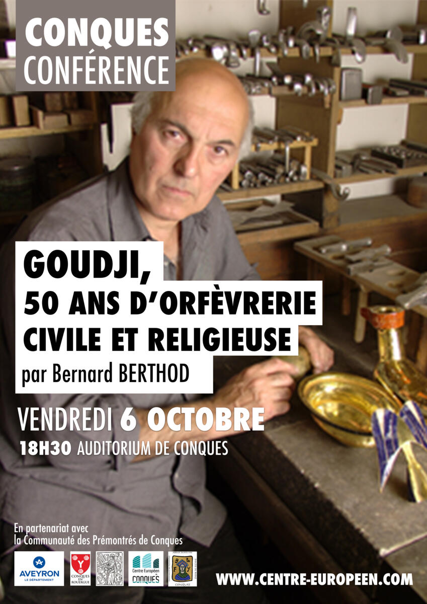 Installé en France depuis 1974, Goudji a réalisé de nombreux objets décoratifs, exposés dans les musées du monde entier, ainsi qu'un abondant matériel liturgique pour les grands sanctuaires européens, le Vatican et le pape. Deux de ses œuvres sont présentes à Conques, dans le chœur de l'abbatiale romane.