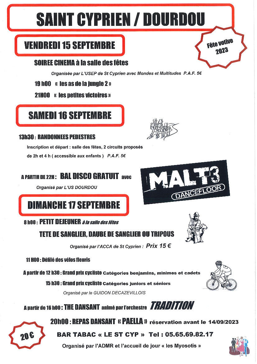 Veuillez noter ci-joint le programme de la fête votive de saint-Cyprien.