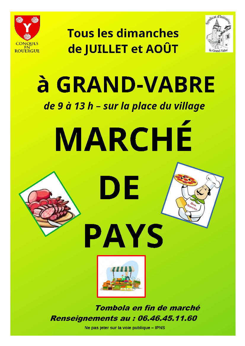 A partir du dimanche 6 juillet le marché de Grand-Vabre aura lieu tous les dimanches.