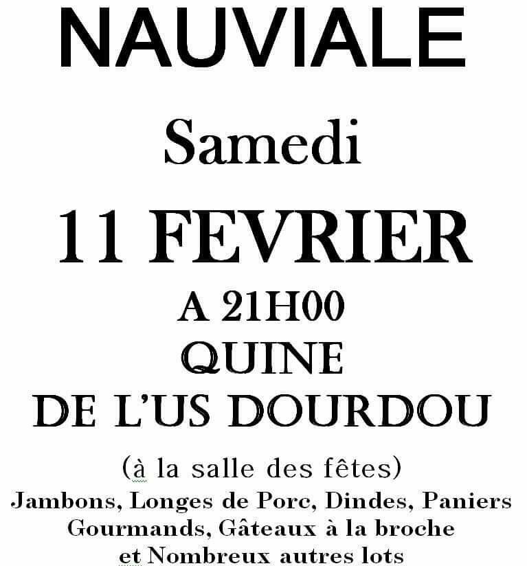 Le club US Dourdou organise une soirée quine le 11 Février à partir de 21h00, salle des fêtes de Nauviale.