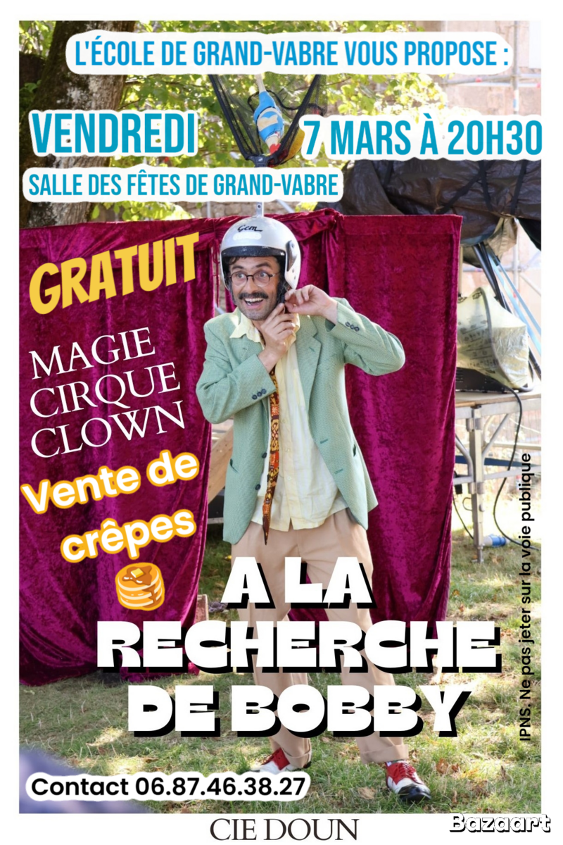 « A la recherche de Bobby » spectacle participatif qui marque les esprits et qui déclenche les rires aux petits comme aux plus grands, avec enchaînement de tours de magie, de jonglage, d'équilibre mais surtout du rire et des surprises qui émerveilleront le public.