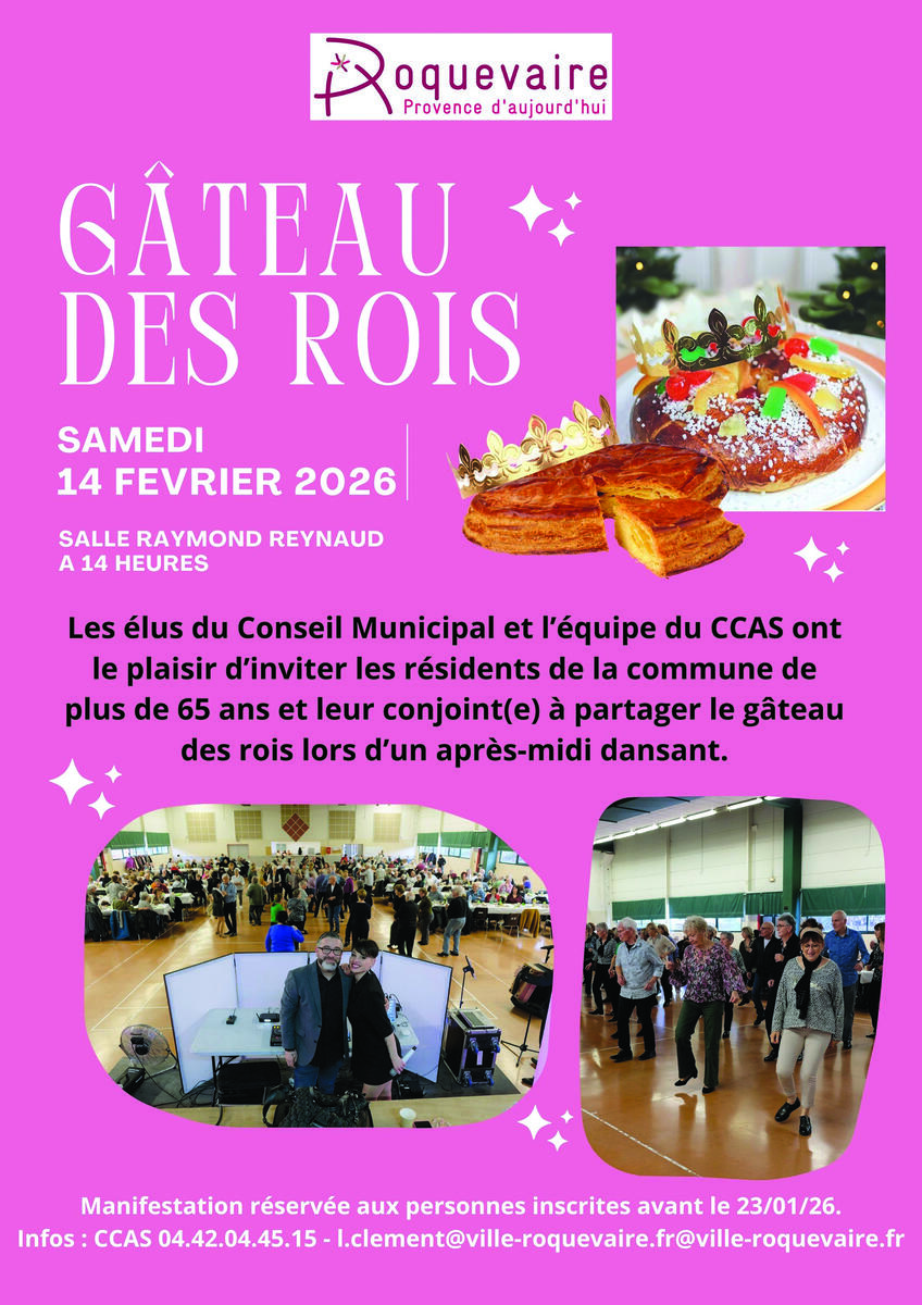 La Ville de Roquevaire invite les séniors au traditionnel Gâteau des Rois le samedi 14 février à partir de 14 heures dans la salle Raymond Reynaud.