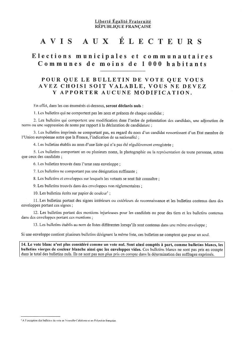 AVIS AUX ÉLECTEURS