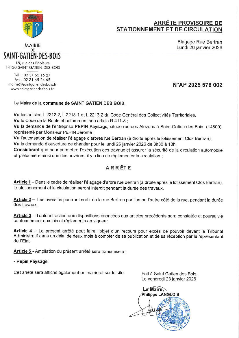 Arrêté municipal élagage Rue Bertran