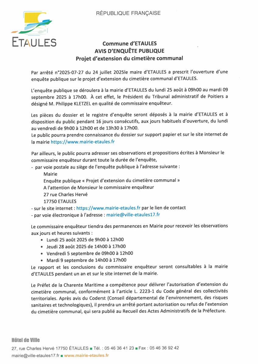 INFORMATION / Avis d'enquête publique
