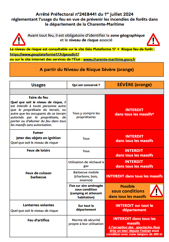 🚨ALERTE RISQUE SÉVÈRE FEUX DE FORÊTS – CHARENTE-MARITIME⚠️