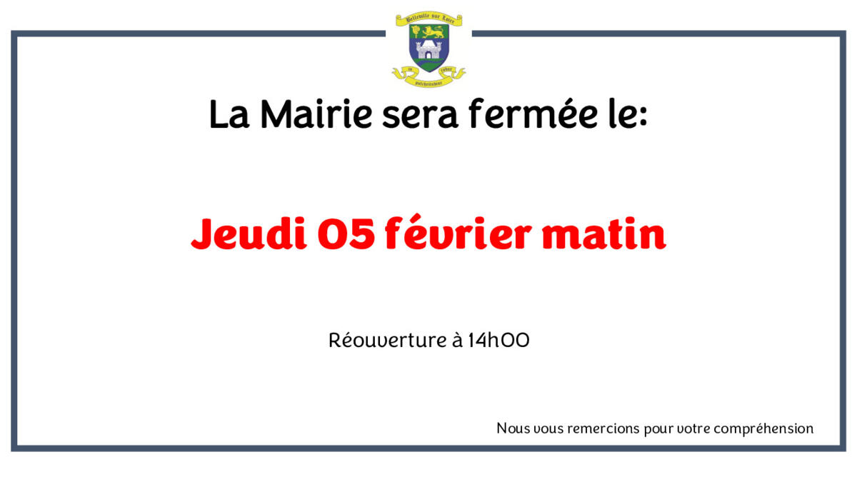 La Mairie sera fermée le jeudi 05 février matin