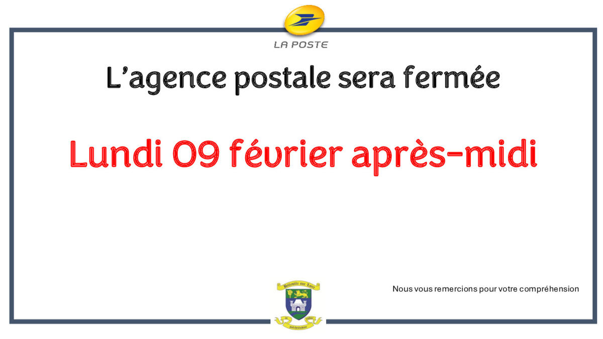 L'Agence postale sera fermée lundi 09 février après-midi