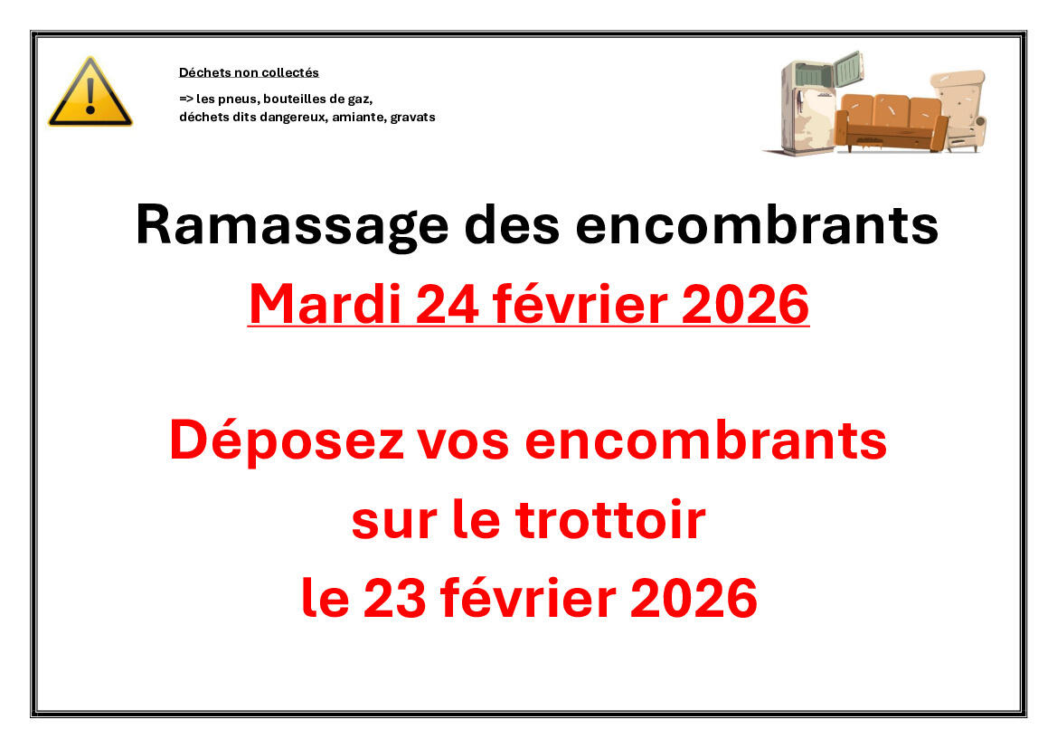 Ramassage des encombrants le mardi 24 février