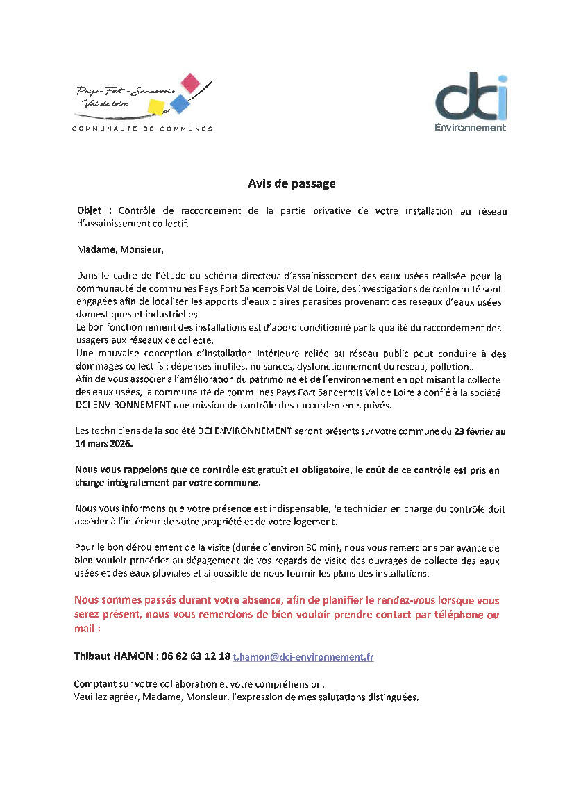Porte à porte / avis de passage DCI Environnement