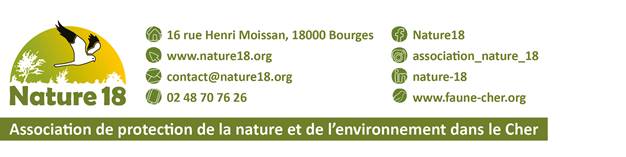 o   Envoyez vos observations sur le site www.oiseauxdesjardins.fr ou https://cher.biolovision.net/, ou en nous envoyant la fiche de comptage remplie, par mail à Sebastien.brunet@nature18.org, ou par lettre à l’adresse de l’association : Nature 18, 16 Rue Henri-Moissan, 18000 Bourges