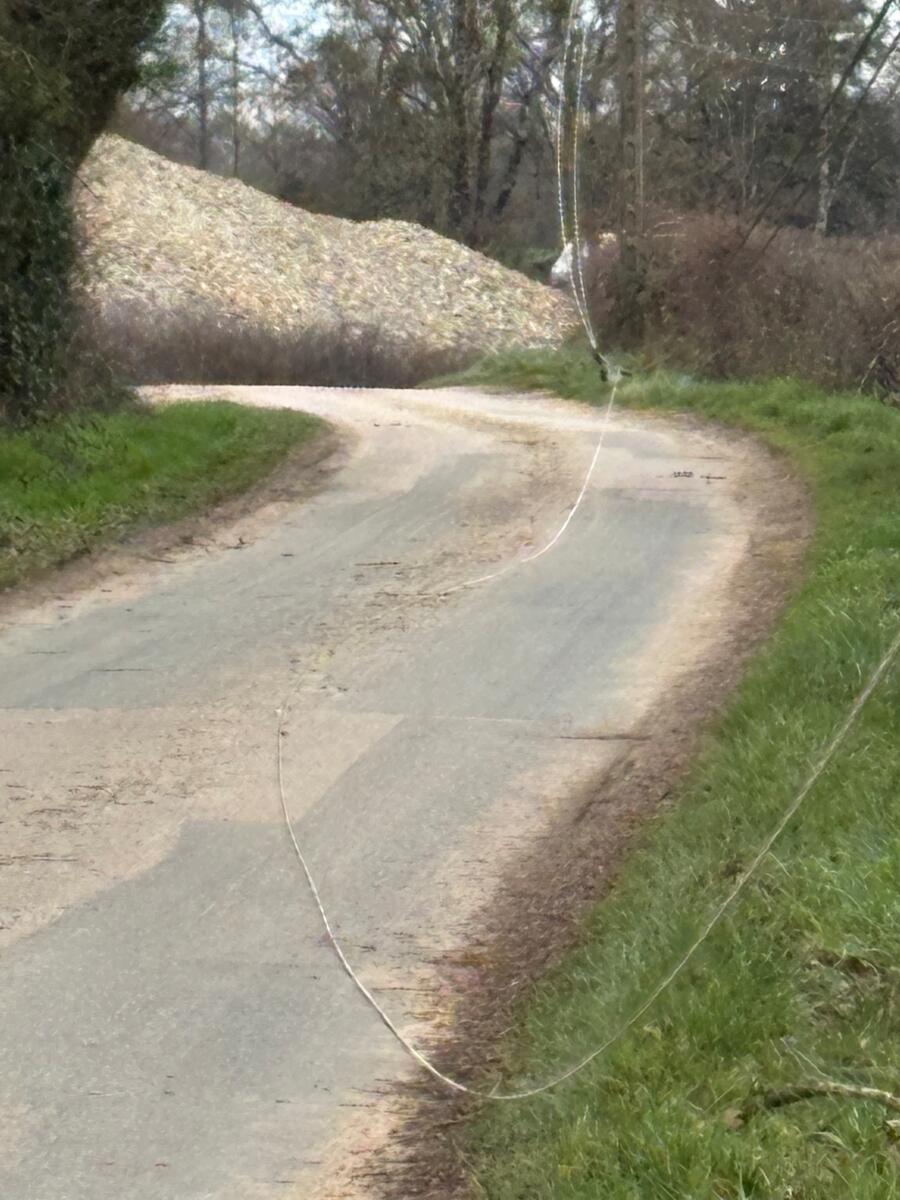 Un câble de téléphone est décroché sur la route du Cheval Girard, vers le le dépôt de Bernard Montagu.