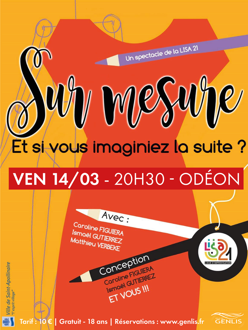 Découvrez le nouveau spectacle de la Ligue d'Impro Saint Apollinaire : "Sur mesure", c'est une histoire dont vous pourrez choisir la fin...
