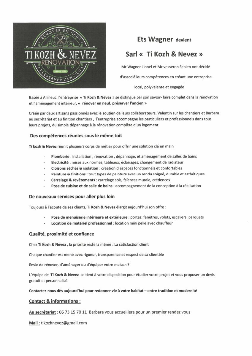 Ets Wagner devient Sarl "Ti Kozh & Nevez" - ALLINEUC