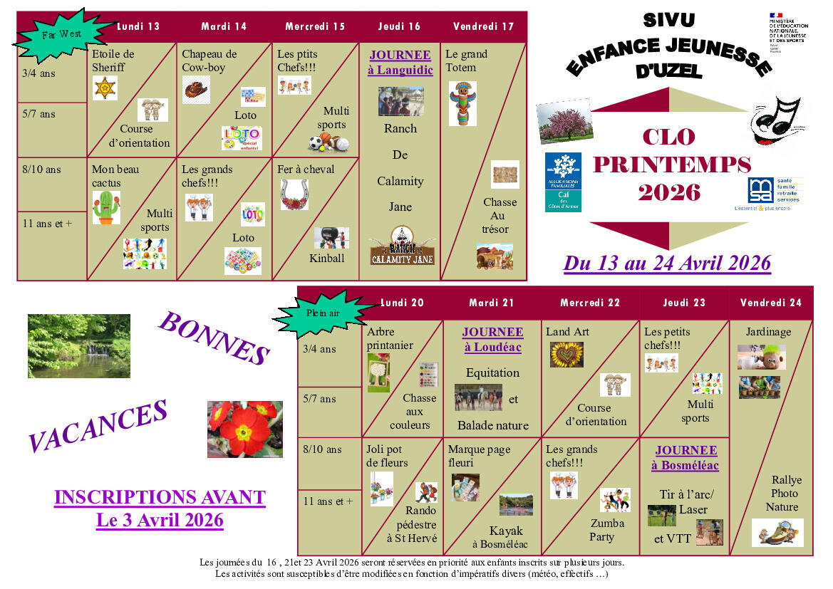 Votre mairie / Actualités / Programme CLO Vacances de Printemps