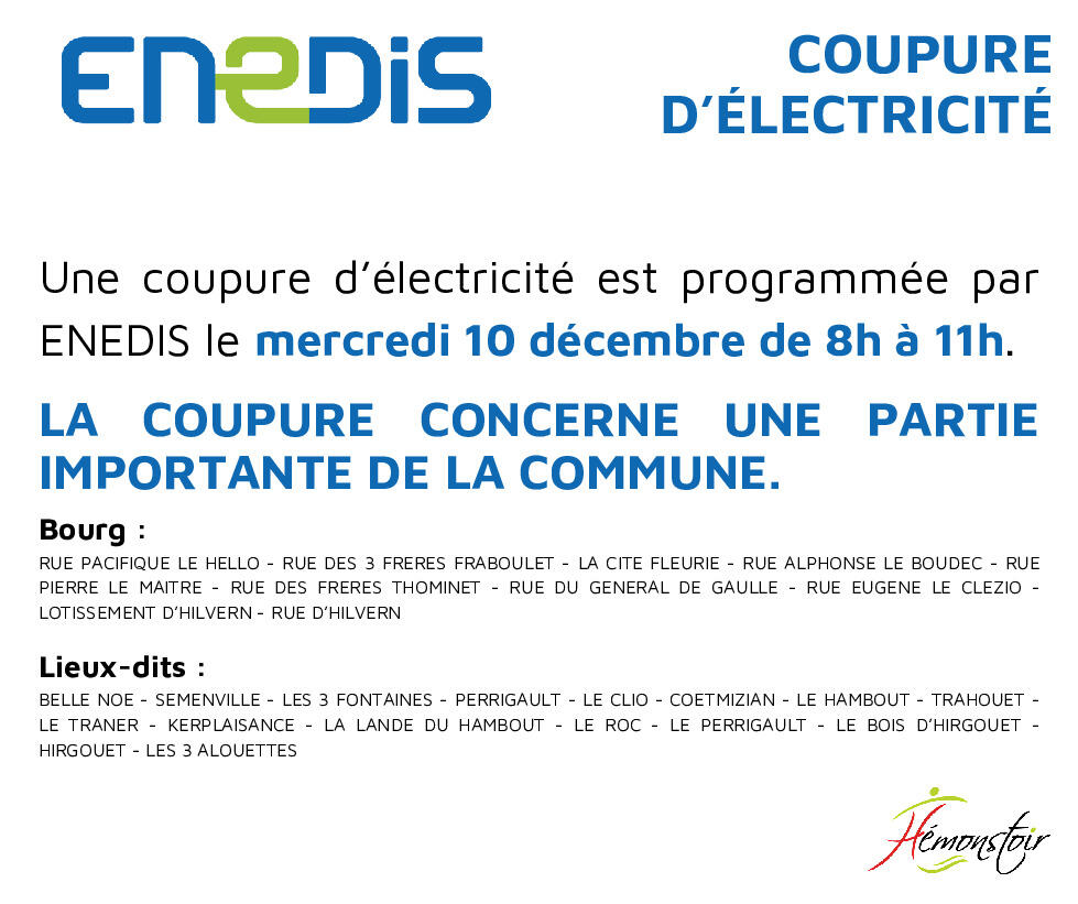 🔌 COUPURE D'ÉLECTRICITÉ - 10 DÉCEMBRE
