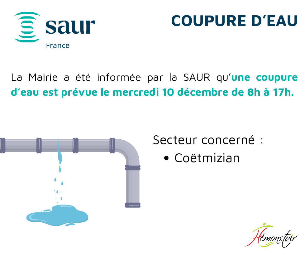 💧COUPURE D'EAU - 10 DÉCEMBRE