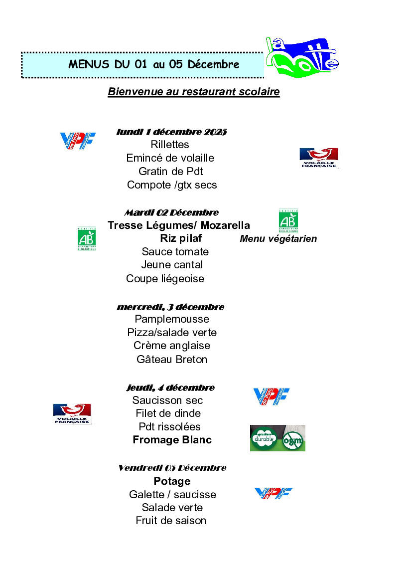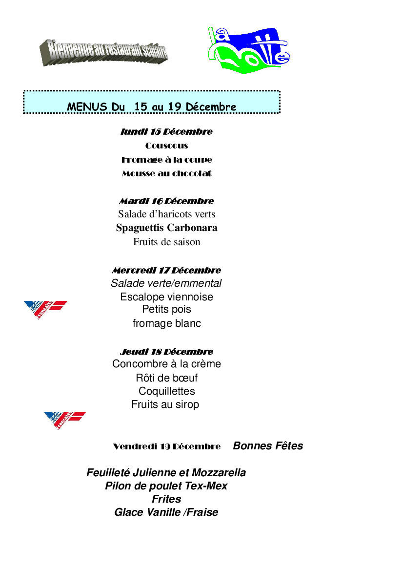 Menus du restaurant scolaire 25-12-06 Ces menus sont susceptibles de changer selon l'approvisionnement ou contrainte technique. Restaurant scolaire