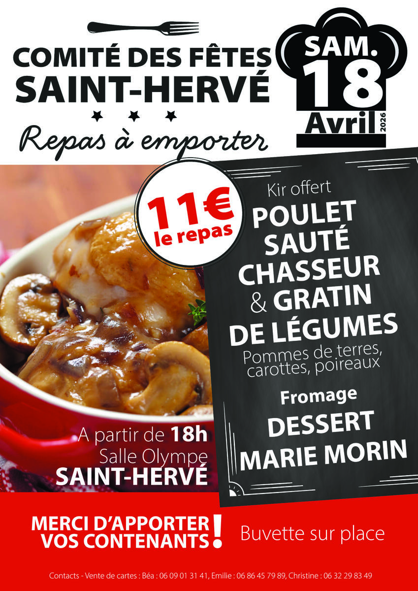 🍽️ REPAS À EMPORTER – SAINT-HERVÉ 🍗
