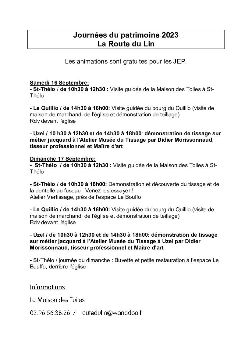 Voici le programme des 16 et 17 septembre pour les journées européennes du patrimoine sur la route du lin.