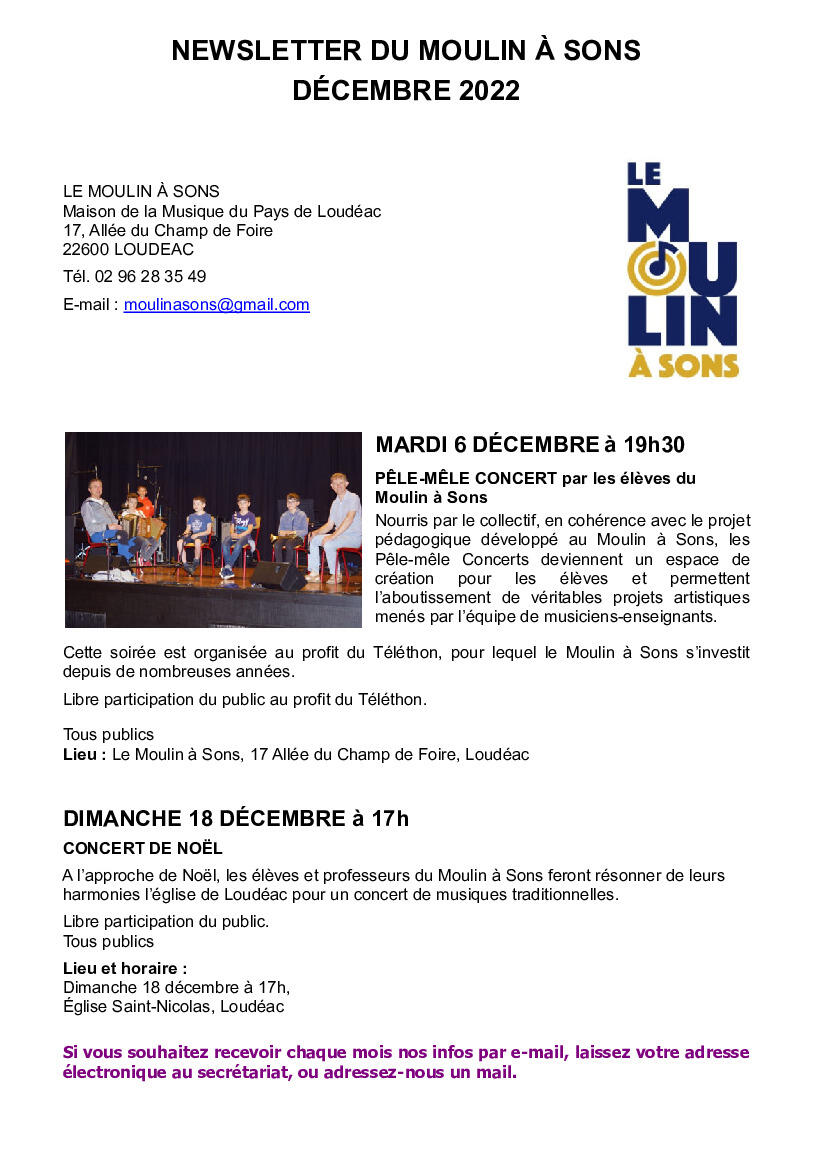Le Moulin à sons de Loudéac vous propose sa lettre d'information pour le mois de décembre.