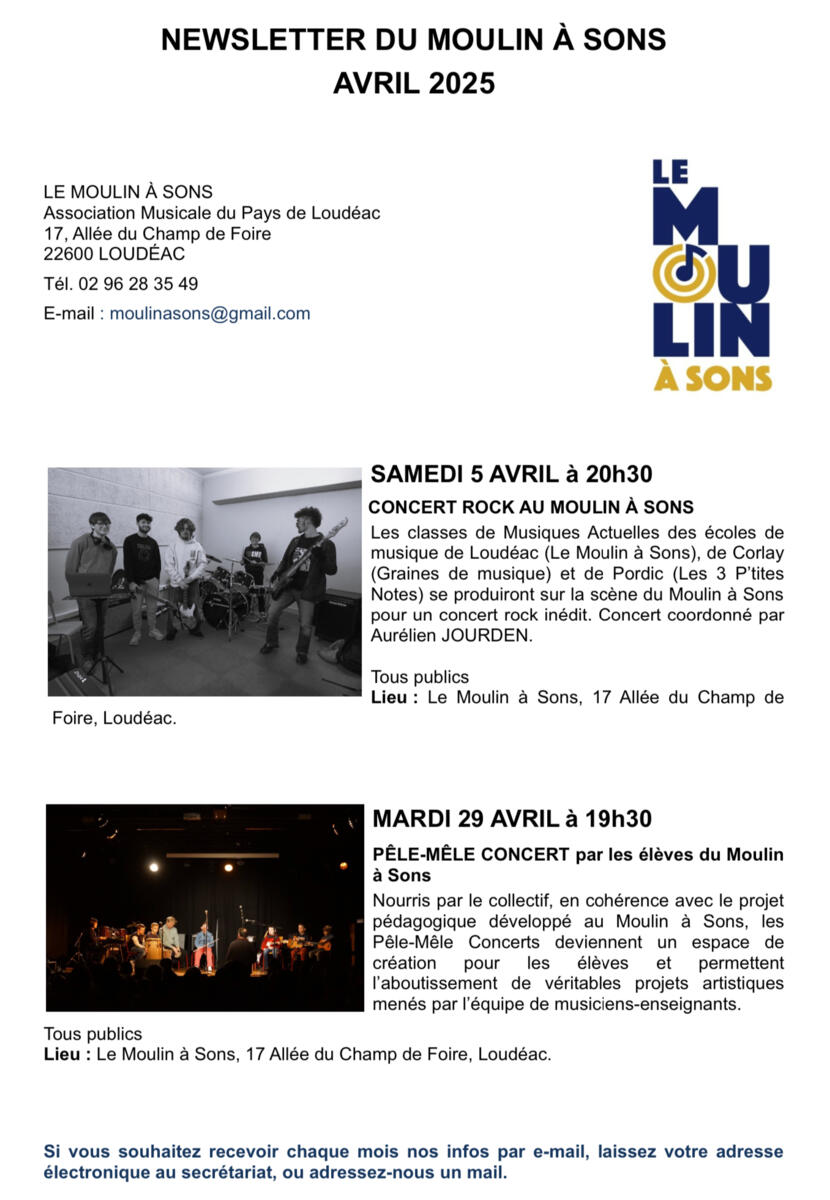 Votre mairie / Actualités / Le Moulin à Sons - programme du mois d’avril