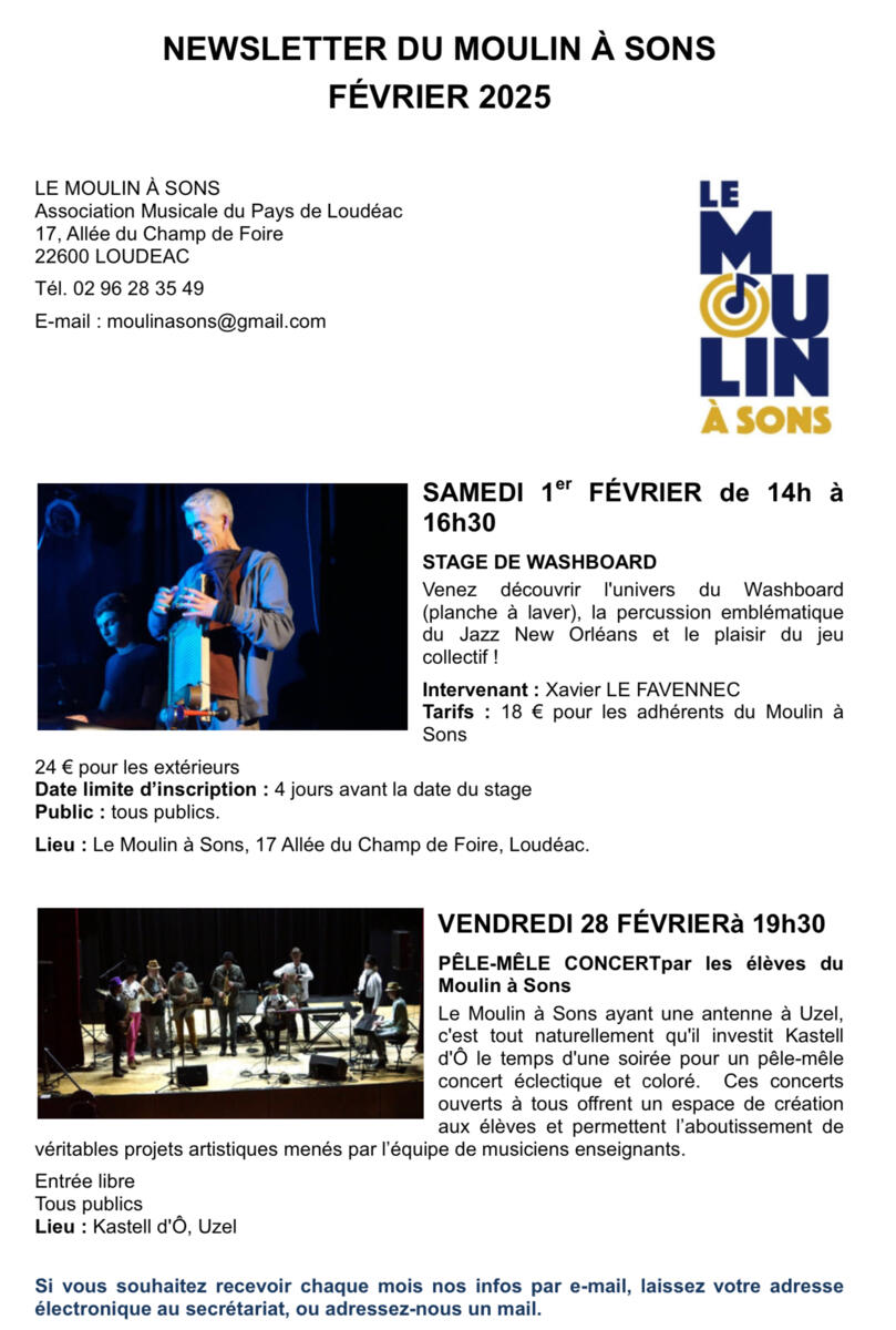 Le Moulin à Sons - Programme du mois de février 25-01-15 Le Moulin à Sons vous propose deux événements.