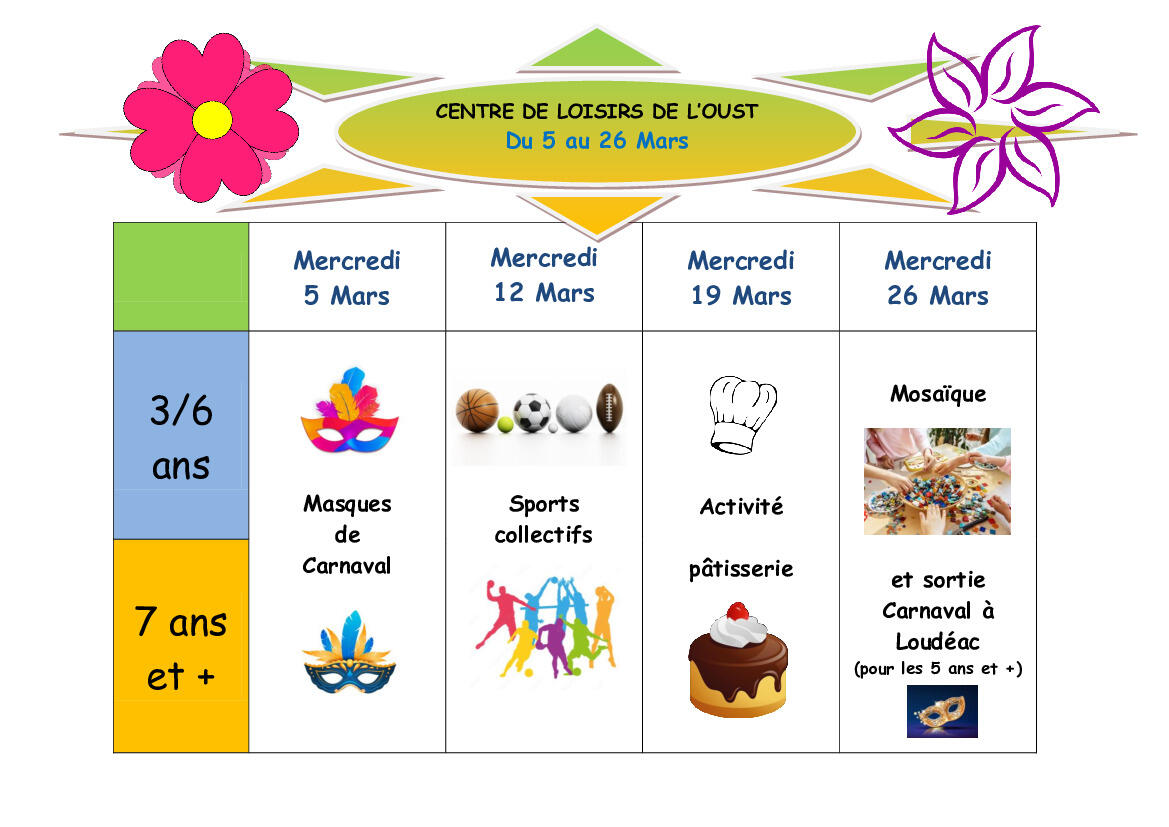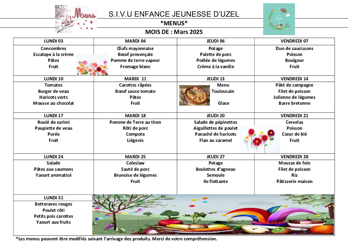 Les menus de la cantine et le programme du CLO pour le mois de mars.